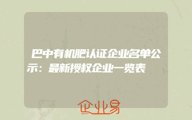 - 巴中有机肥认证企业名单公示:最新授权企业一览表