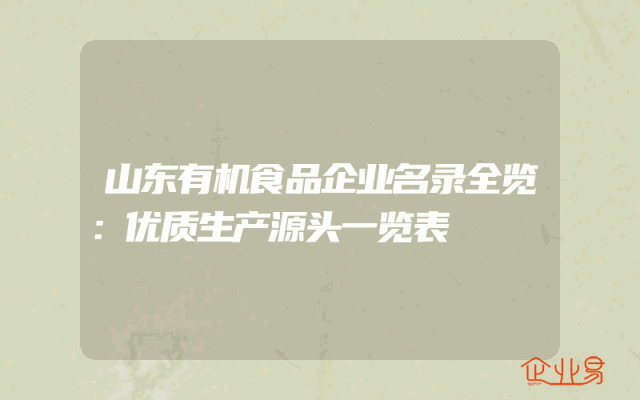 - 山东有机食品企业名录全览:优质生产源头一览表