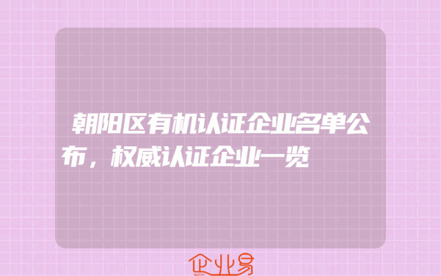 - 朝阳区有机认证企业名单公布,权威认证企业一览