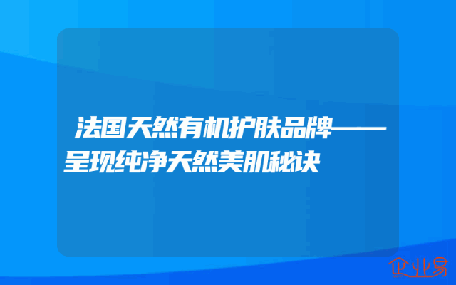 - 法国天然有机护肤品牌——呈现纯净天然美肌秘诀