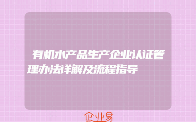 - 有机水产品生产企业认证管理办法详解及流程指导