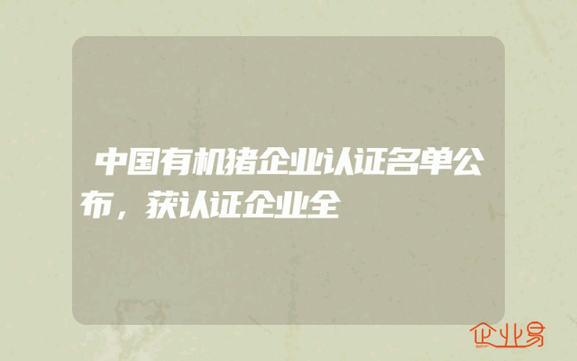 - 中国有机猪企业认证名单公布,获认证企业全解析一、获认证企业名单公布近日,中国有机猪企业认证名单正式公布,经过严格的审核和评估,一批致力于有机农业发展的企业成功获得认证。这些企业在生产、加工、销售等环节严格遵守有机农业标准,为消费者提供高品质