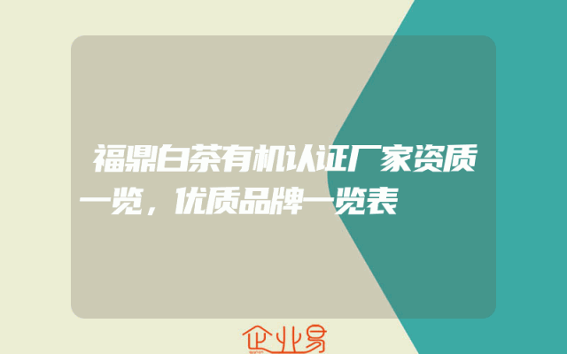 - 福鼎白茶有机认证厂家资质一览,优质品牌一览表