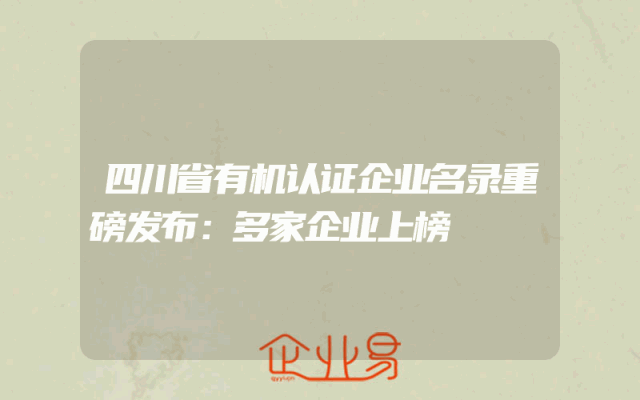 - 四川省有机认证企业名录重磅发布:多家企业上榜