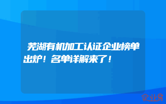 - 芜湖有机加工认证企业榜单出炉!名单详解来了!