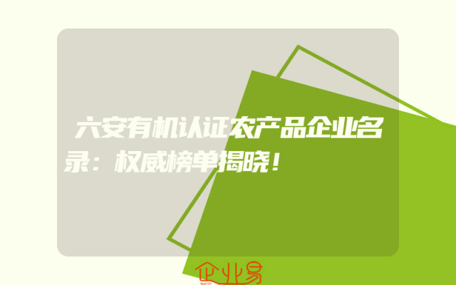 - 六安有机认证农产品企业名录:权威榜单揭晓!