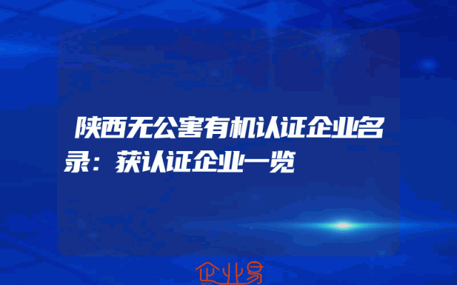 - 陕西无公害有机认证企业名录:获认证企业一览