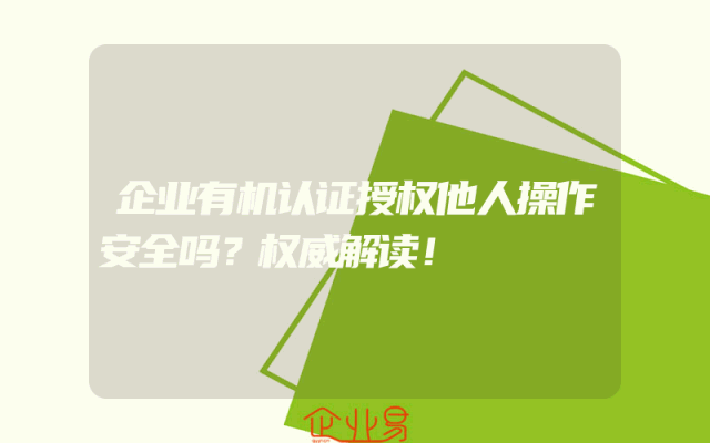 - 企业有机认证授权他人操作安全吗?权威解读!
