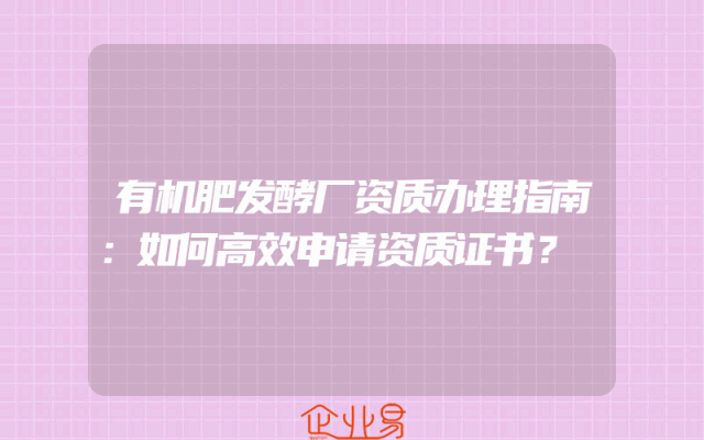 - 有机肥发酵厂资质办理指南:如何高效申请资质证书?