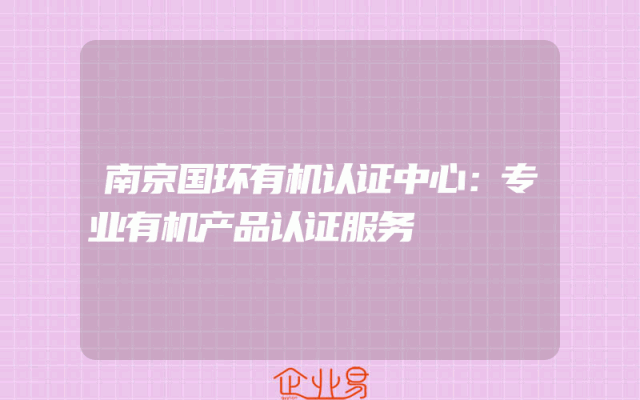 - 南京国环有机认证中心:专业有机产品认证服务一、中心简介南京国环有机认证中心是国内领先的有机产品认证服务机构,致力于为广大有机产品生产企业提供专业、可靠、高效的认证服务。中心拥有资深的认证专家团队和先进的审核流程,确保每一项认证都符合国内外有