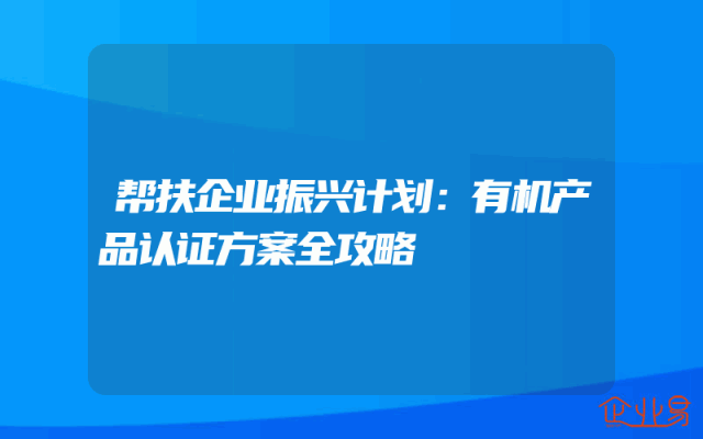 - 帮扶企业振兴计划:有机产品认证方案全攻略