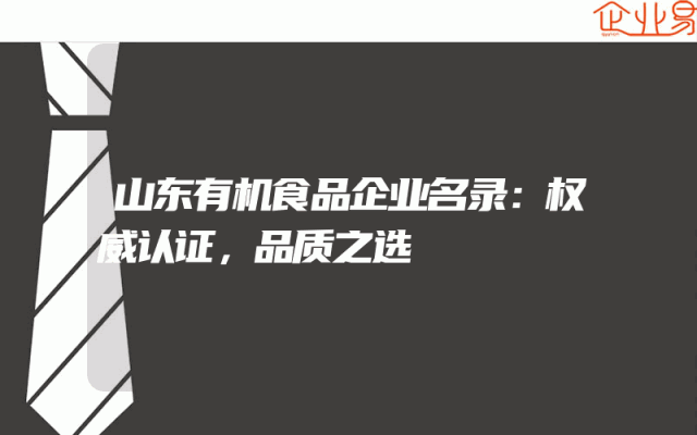 - 山东有机食品企业名录:权威认证,品质之选一、引言随着人们对健康生活的追求和对食品安全问题的日益关注,有机食品逐渐成为人们餐桌上的新宠。山东省作为我国的重要农业产区,有机食品产业也蓬勃发展。为了向广大消费者推荐信誉良好、品质过硬的有机
