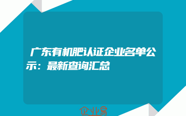 - 广东有机肥认证企业名单公示:最新查询汇总