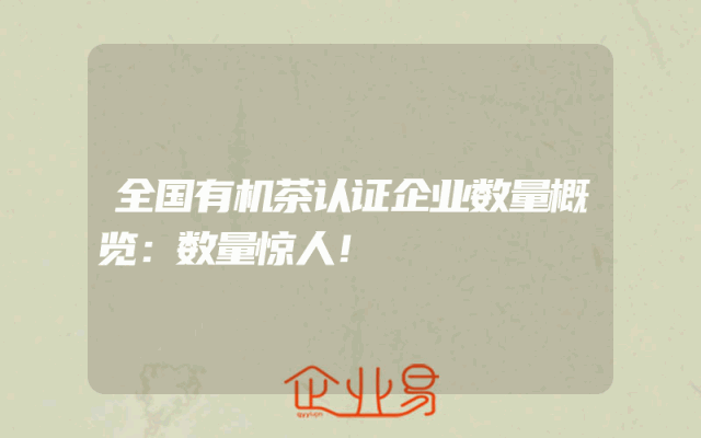 - 全国有机茶认证企业数量概览:数量惊人!一、引言随着人们对健康生活的追求和对天然有机产品的日益关注,有机茶作为绿色、健康的饮品,其市场需求逐年增加。据最新统计数据显示,全国有机茶认证企业数量呈现出惊人的增长趋势。二、有机茶产业蓬勃发展近年来,