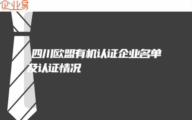- 四川欧盟有机认证企业名单及认证情况解析一、欧盟有机认证概述随着全球环保意识的提高,有机产品越来越受到消费者青睐。欧盟有机认证作为国际上广泛认可的有机认证之一,对保障有机产品的质量和信誉起到了重要作用。四川省内也有不少企业积极申请欧盟有机认证