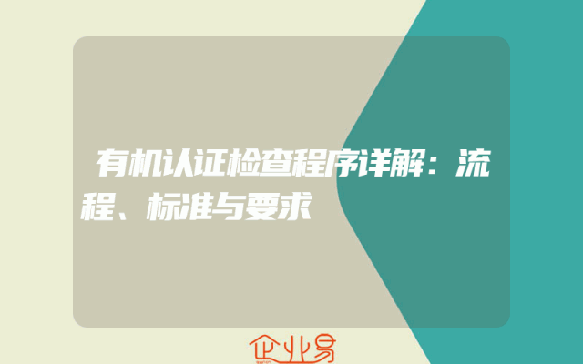 - 有机认证检查程序详解:流程、标准与要求在现代社会中,有机认证已经成为众多企业的必备资质,不仅关乎产品品质,更涉及消费者权益和企业信誉。有机认证检查程序作为确保有机产业健康发展的重要环节,其流程、标准