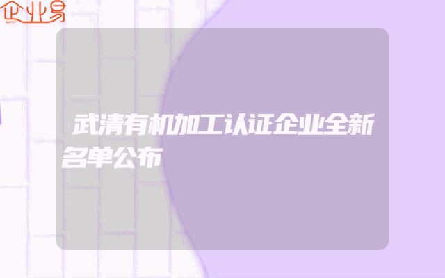 - 武清有机加工认证企业全新名单公布