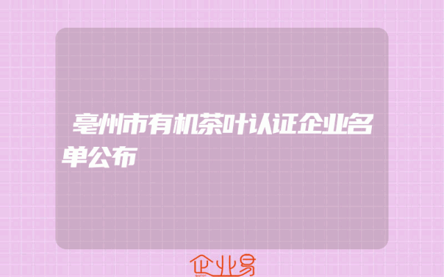 - 亳州市有机茶叶认证企业名单公布