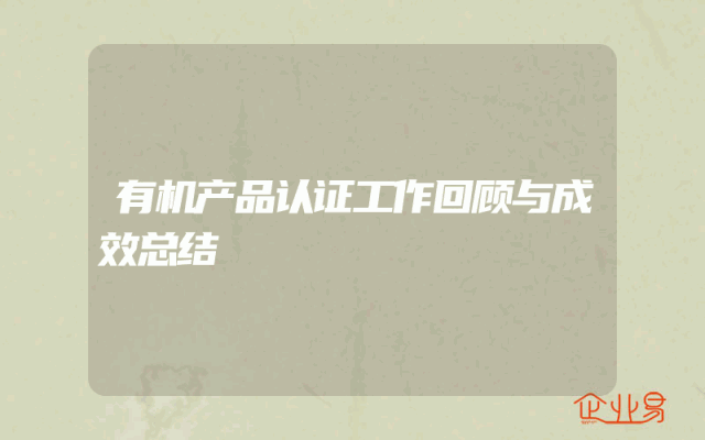 - 有机产品认证工作回顾与成效总结