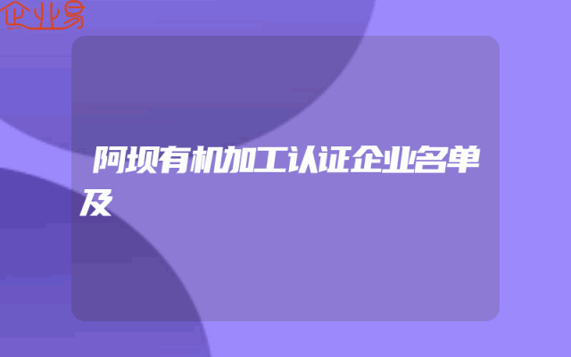 - 阿坝有机加工认证企业名单及