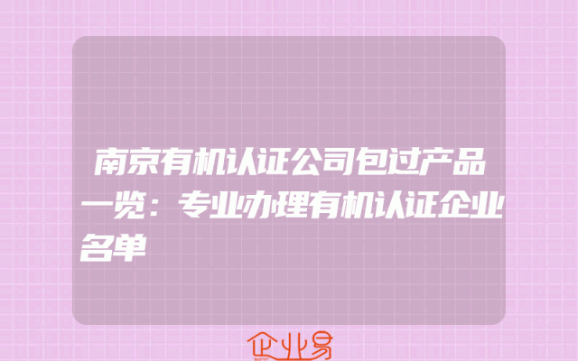 - 南京有机认证公司包过产品一览:专业办理有机认证企业名单