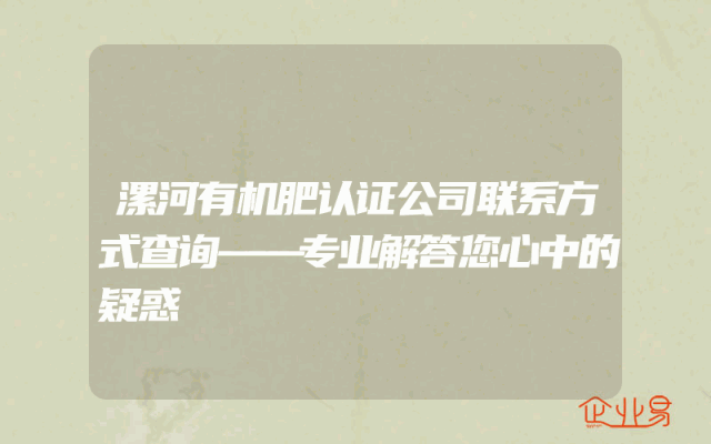 - 漯河有机肥认证公司联系方式查询——专业解答您心中的疑惑