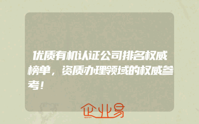 - 优质有机认证公司排名权威榜单,资质办理领域的权威参考!