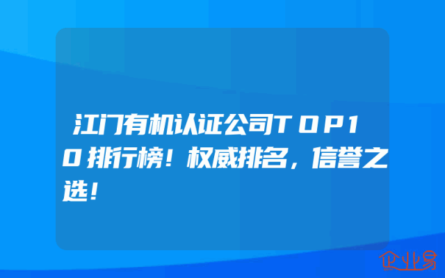 - 江门有机认证公司TOP10排行榜!权威排名,信誉之选!