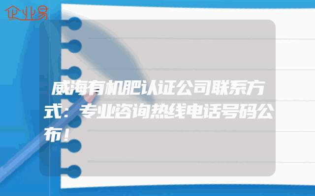 - 威海有机肥认证公司联系方式:专业咨询热线电话号码公布!