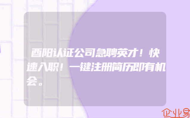 - 酉阳认证公司急聘英才!快速入职!一键注册简历即有机会。