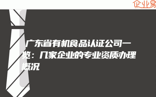 - 广东省有机食品认证公司一览:几家企业的专业资质办理概况