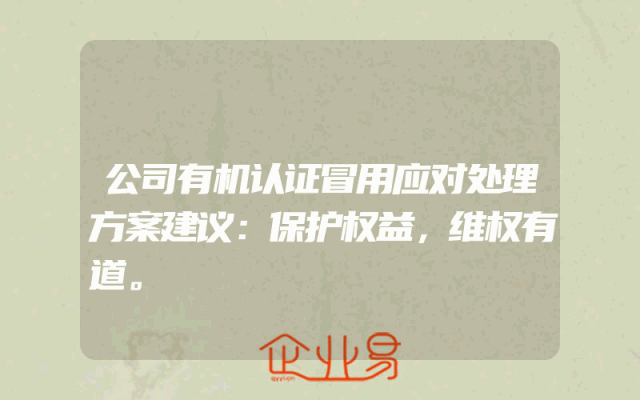 - 公司有机认证冒用应对处理方案建议:保护权益,维权有道。