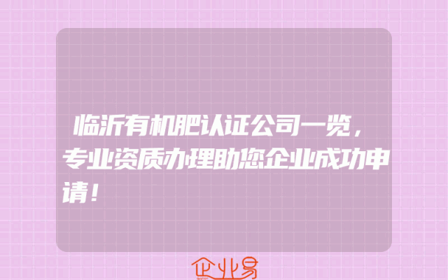 - 临沂有机肥认证公司一览,专业资质办理助您企业成功申请!