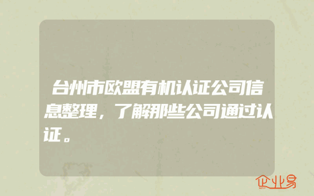 - 台州市欧盟有机认证公司信息整理,了解那些公司通过认证。