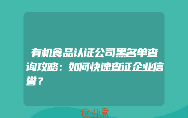 - 有机食品认证公司黑名单查询攻略:如何快速查证企业信誉?