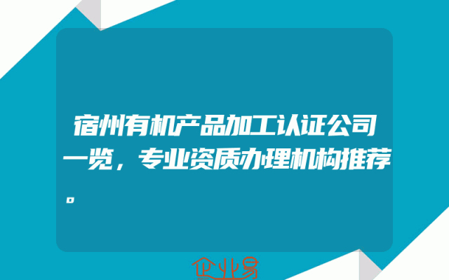 - 宿州有机产品加工认证公司一览,专业资质办理机构推荐。