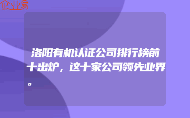 - 洛阳有机认证公司排行榜前十出炉,这十家公司领先业界。