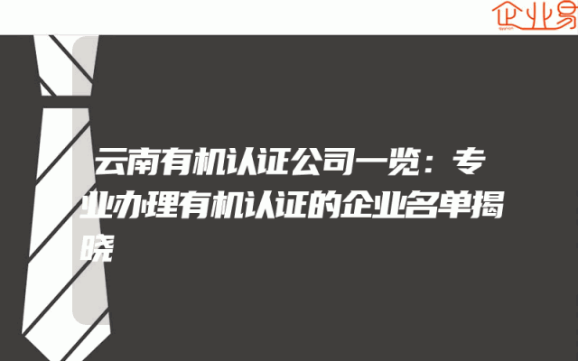 - 云南有机认证公司一览:专业办理有机认证的企业名单揭晓