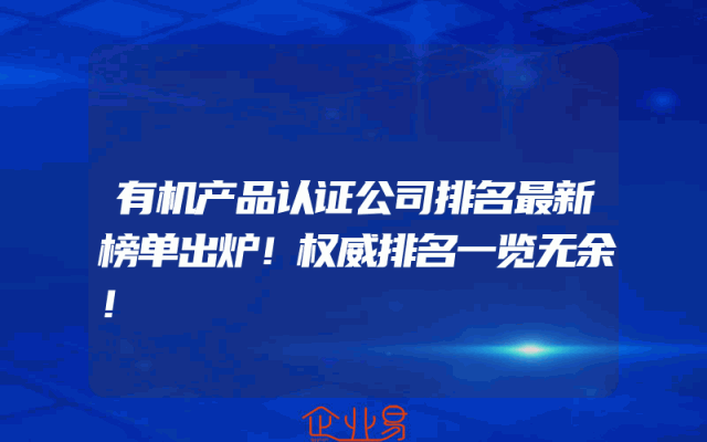 - 有机产品认证公司排名最新榜单出炉!权威排名一览无余!