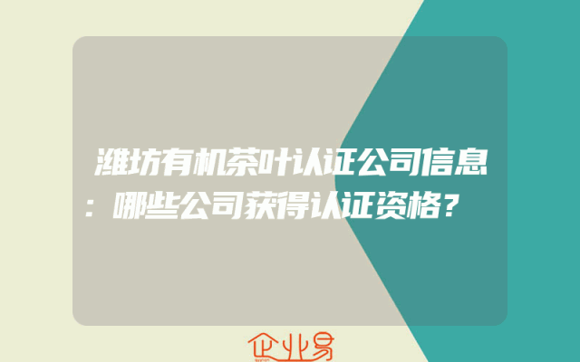 - 潍坊有机茶叶认证公司信息:哪些公司获得认证资格?