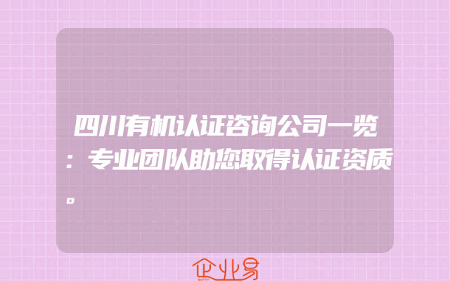- 四川有机认证咨询公司一览:专业团队助您取得认证资质一、四川有机认证咨询业的蓬勃发展近年来,随着经济的发展和消费者对有机产品的日益关注,四川有机认证咨询行业迅速崛起。一系列专业的认证咨询公司如雨后春笋般涌现,为广大企业提供全方位的有机认证咨询