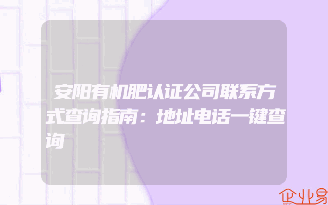 - 安阳有机肥认证公司联系方式查询指南:地址电话一键查询