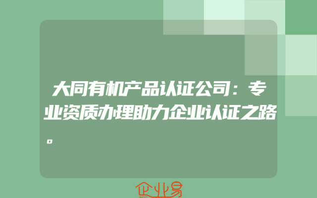 - 大同有机产品认证公司:专业资质办理助力企业认证之路。
