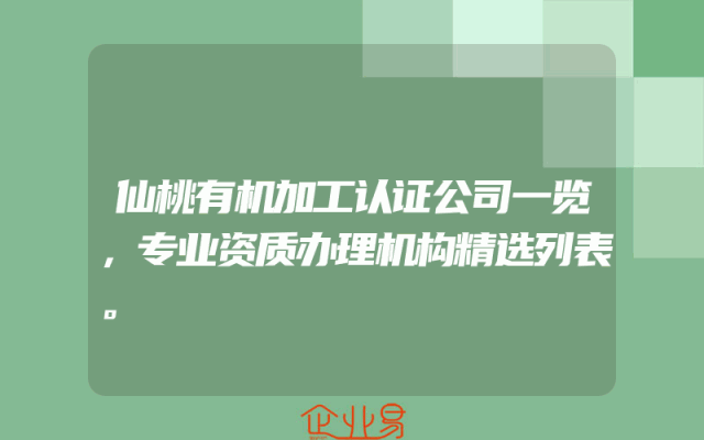 - 仙桃有机加工认证公司一览,专业资质办理机构精选列表。