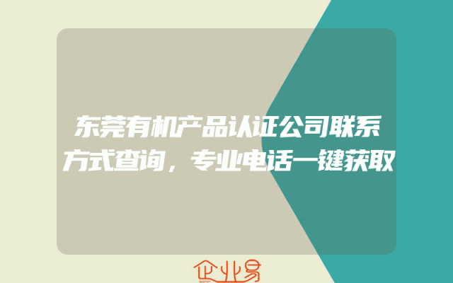 - 东莞有机产品认证公司联系方式查询,专业电话一键获取