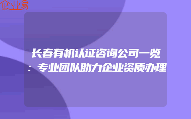 - 长春有机认证咨询公司一览:专业团队助力企业资质办理