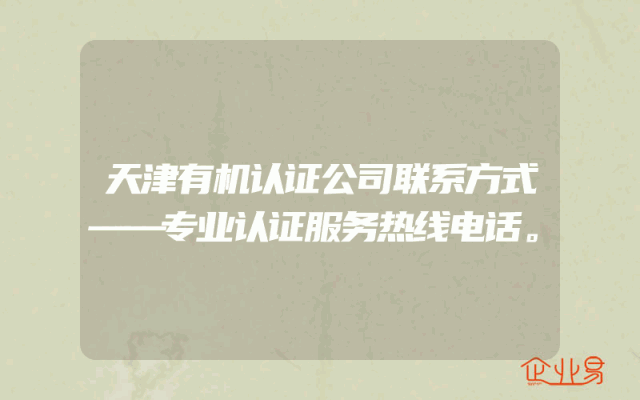 - 天津有机认证公司联系方式——专业认证服务热线电话。