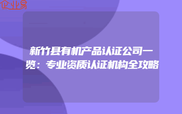 - 新竹县有机产品认证公司一览:专业资质认证机构全攻略