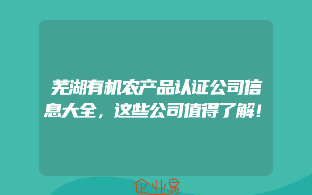 - 芜湖有机农产品认证公司信息大全,这些公司值得了解!