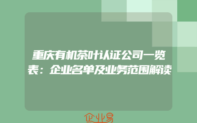 - 重庆有机茶叶认证公司一览表:企业名单及业务范围解读